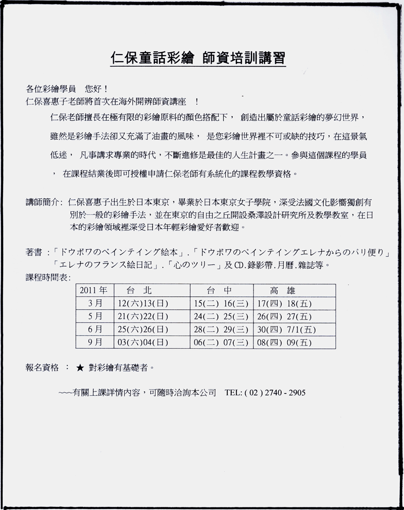 2012/1/6 11:14 73399 第一屆( 彩繪師資) 講座簡章--改版1.htm