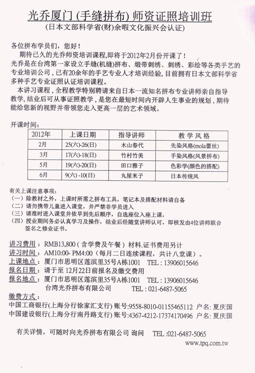 2012/1/7 15:11 36299 廈門手縫拼布師資簡章7.htm
